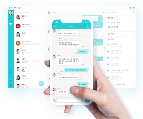 특히 메신저를 통해 동료와 실시간으로 소통할 수 있죠. 메신저 내 첨부된 파일은 미리보기를 통해 정보유출을 예방할 수 있습니다. 그리고 시간대, 메뉴별 알림을 설정하면 집에서도 중요한 업무를 놓치지 않을 수 있습니다!