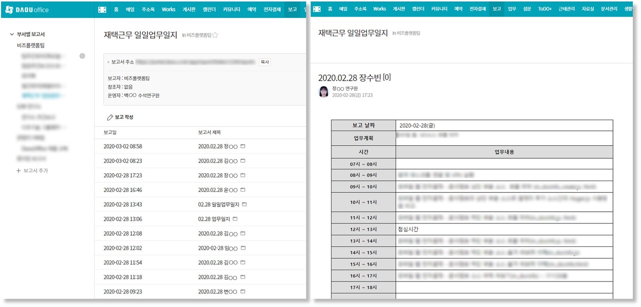 매일매일 다우오피스를 사용해왔지만 최근 재택근무를 실시하면서 다우오피스의 장점을 정말 잘 활용하고 있다는 생각이 드네요~ ㅎㅎ