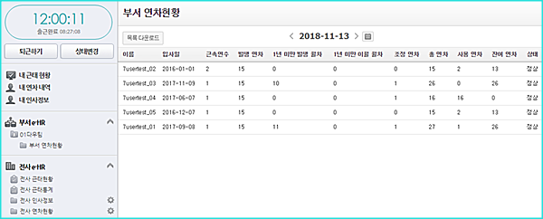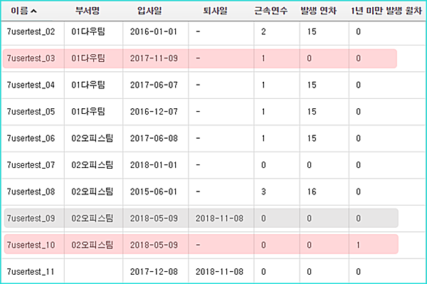 1) CSV 파일 등록을 통해 근속연수와 발생 연차가 자동으로 등록됩니다.