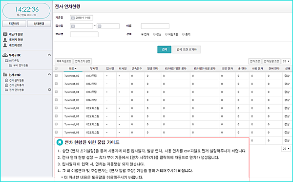 연차현황 일괄등록으로 편리한 관리!