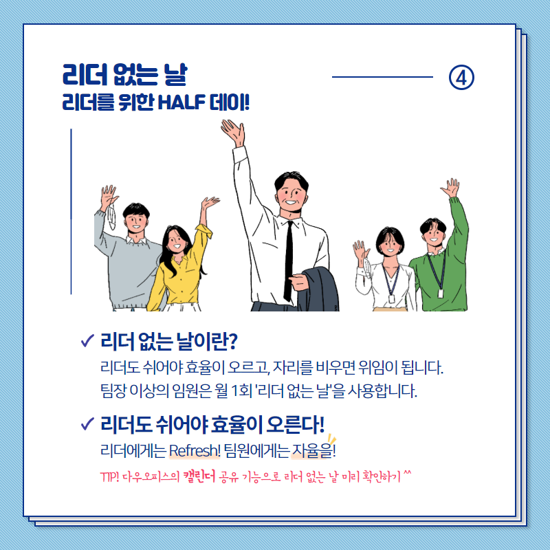 TIP! 다우오피스의 캘린더 공유 기능으로 리더 없는 날을 미리 확인하는 센스!^^