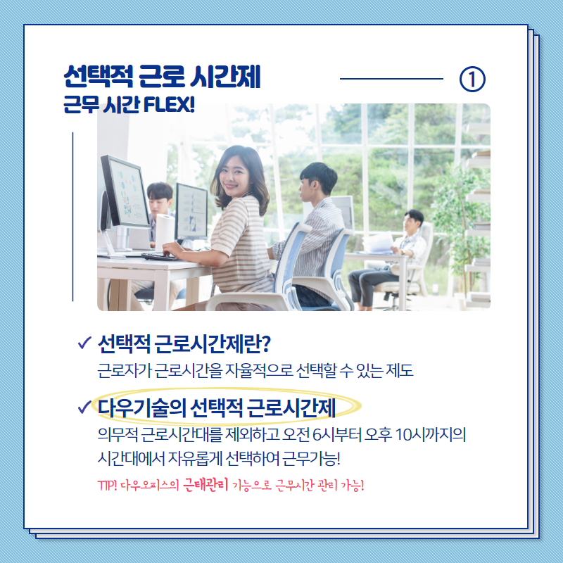 TIP! 다우오피스의 근태관리 기능과 함께라면 근무 시간 관리도 걱정 없겠죠?