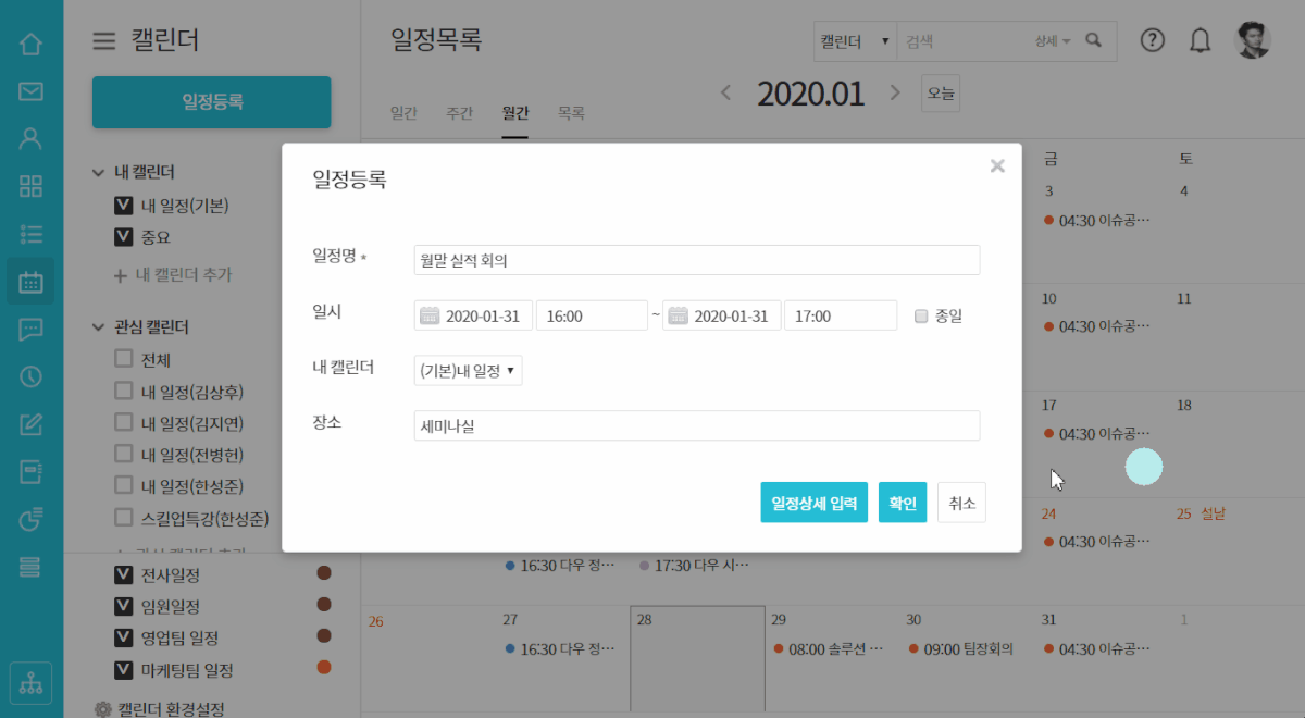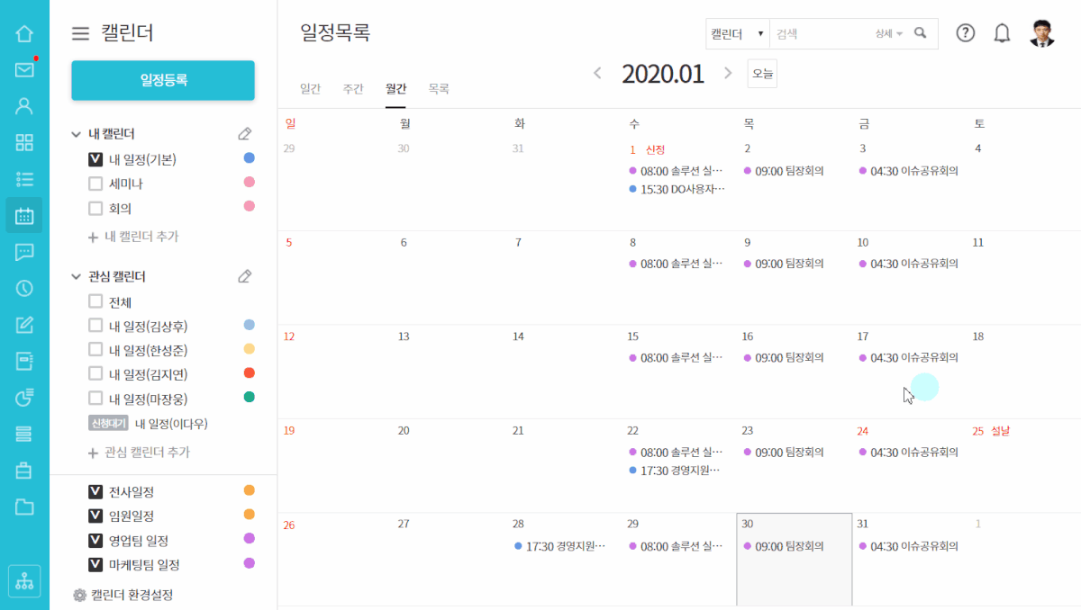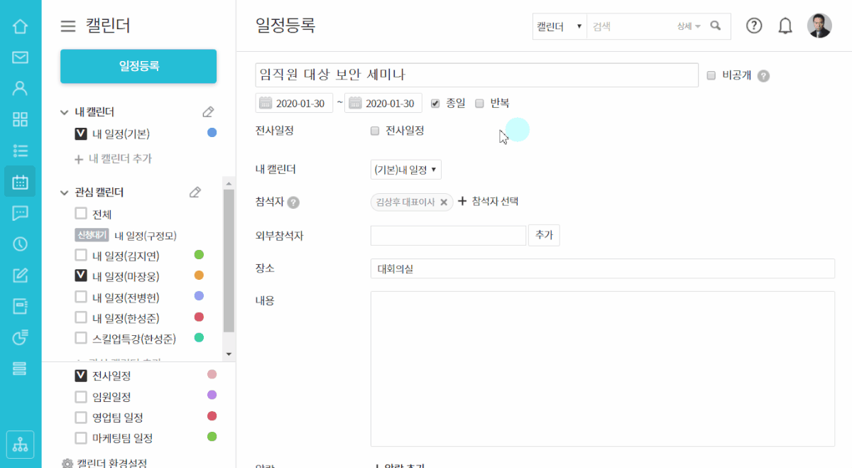 관심 캘린더 설정으로 일정 공유
