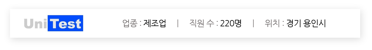 유니테스트는 2000년 설립 이후 줄곧 반도체 검사 장비 관련 분야에만 집중하여 반도체 후공정의 핵심인 메모리 모듈 테스터와 메모리 컴포넌트 테스터를 국내 업계 최초로 개발하고 상용화하여 반도체 장비의 국산화를 주도해온 기업입니다. 이러한 성장과 발전을 결과가 아닌 과정으로 생각하고, 지속적인 연구 개발 및 신규 사업의 진출을 통해 세계적인 경쟁력을 확보하기 위해 끊임없이 노력하겠습니다.
