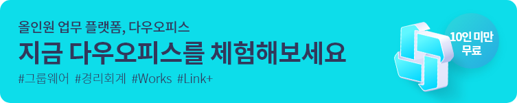 단, 인당 월 4천 원인 다우오피스 그룹웨어(클라우드 공유형)를 사용하는 경우에만 무료로 제공됩니다. (설치비 5만 원/1회)