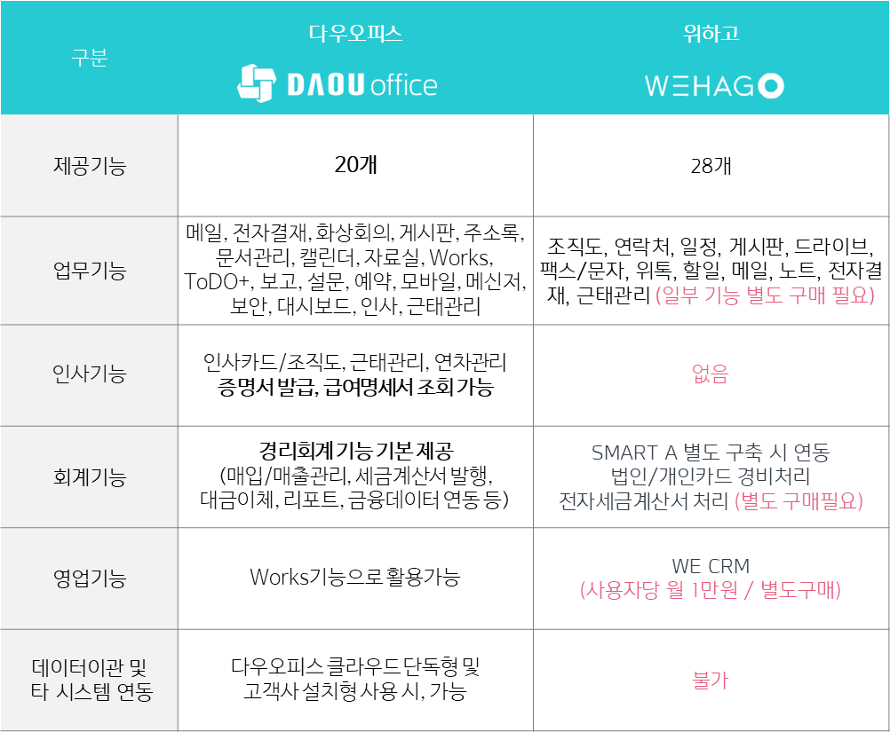 ✔ 100인 기준 다우오피스가 기본 요금이 더 져렴!