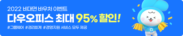 | (종료) 다우오피스 사용료 20% 할인, 연말감사제 이벤트 🎁(11/1 ~ 12/31) (0) | 2022.11.01 |