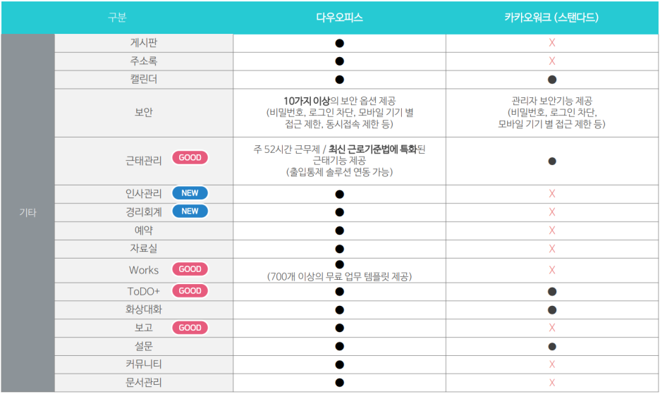 그룹웨어 기타 기능 비교