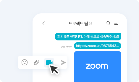회의 진행자는 메신저에서 화상회의 대화방을 만들고 참여자들은 링크를 통해 화상회의에 참여해요