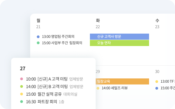 영업팀뿐만 아니라 기업 내에서 사용하는 데 효과적인 그룹웨어랍니다.