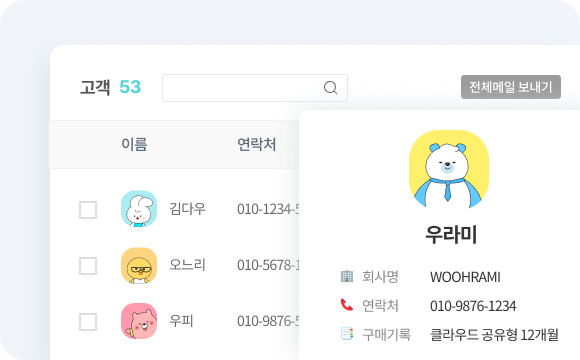 고객의 연락 정보와 구매 기록을 쉽고 빠르게 확인하고 관리해요!