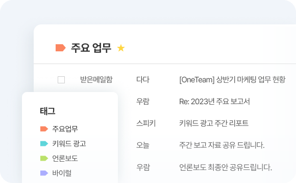 메일을 분류 및 지정하여 원하는 메일을 쉽게 찾고 관리할 수 있습니다.