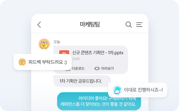 콘텐츠 기획할 때 피드백과 리뷰를 신속하게 주고받아요!