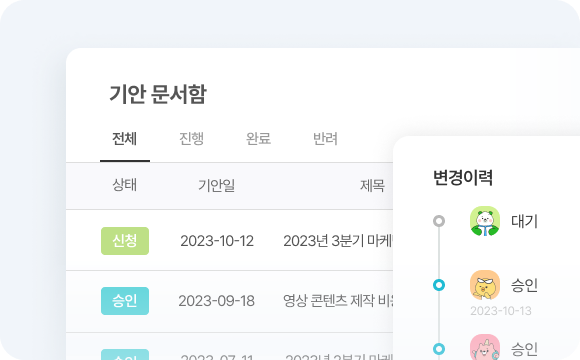 오프라인 결재 프로세스를 온라인으로도 완벽 지원하기 때문에 언제 어디서나 빠른 결재를 할 수 있으며