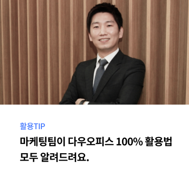 시중에는 다양한 그룹웨어가 존재하지만 저희 다우오피스는 마케팅팀에게 꼭 필요한 그룹웨어임과 동시에