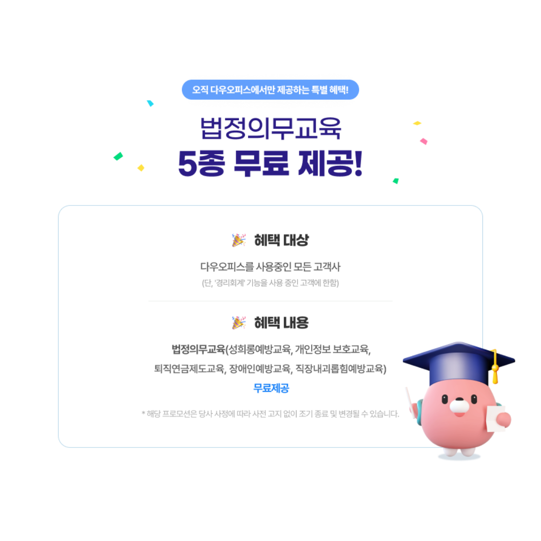 법정의무교육 5종을 무료로 제공받을 수 있어요.