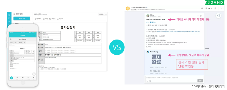 "SNS 형태의 협업툴은 휘발성을 지닌 메시지 중심으로 업무의 맥락과 히스토리를 파악하기 힘들다."