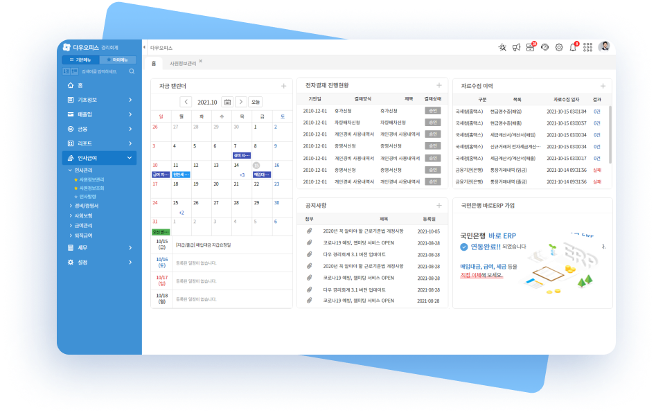 더 나아가 기업의 회계처리 전반에 대해서 관리할 수 있는 프로그램입니다.