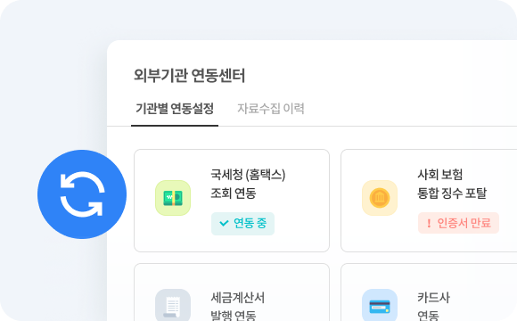 단 한 번의 인증으로 매입/매출 데이터를 자동으로 연동하고,