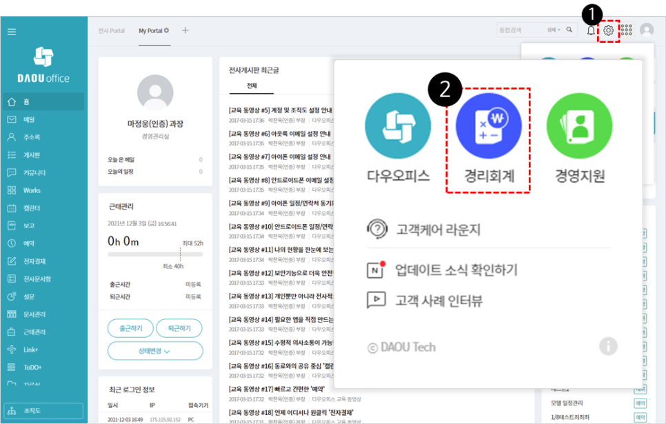 | [경리회계 가이드] 다우오피스 경리회계·경영지원을 무료로 사용할 수 있다고? - 가격 안내 (0) | 2021.12.02 |