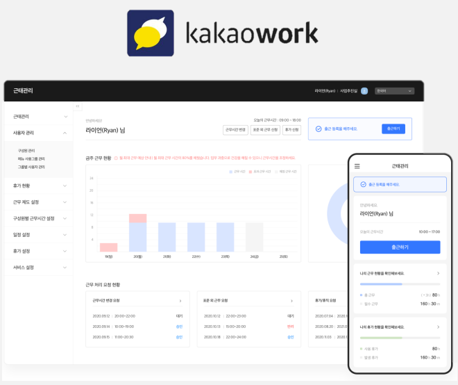 다우오피스와 카카오워크는 언제 어디서나 메신저를 통해