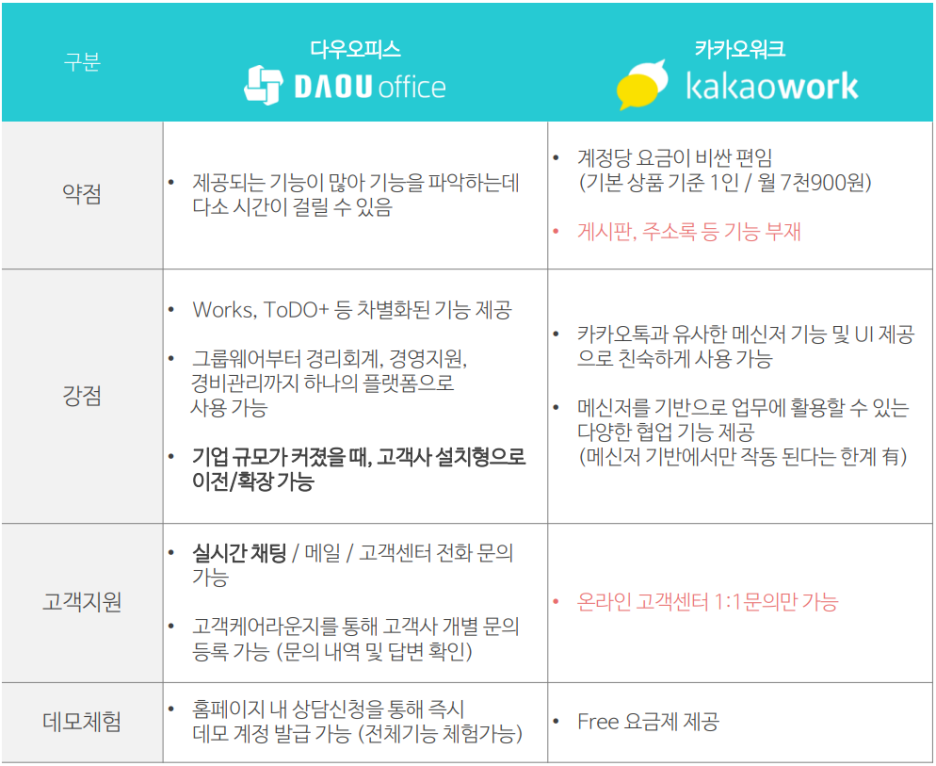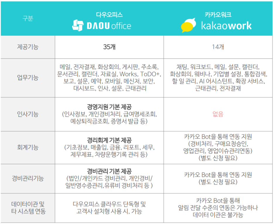 다우오피스와 카카오워크 비교 총정리