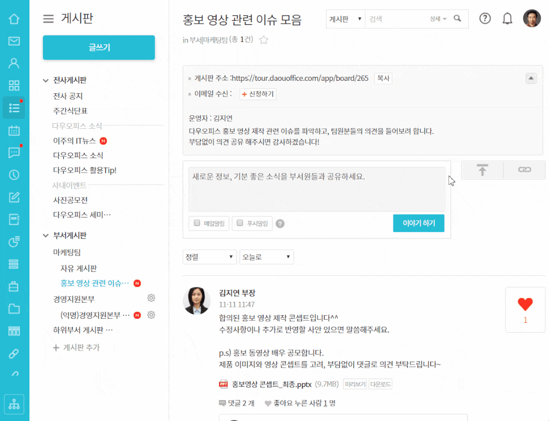 | 다우오피스 기능소개, 커뮤니티와 설문편 (0) | 2020.03.09 |