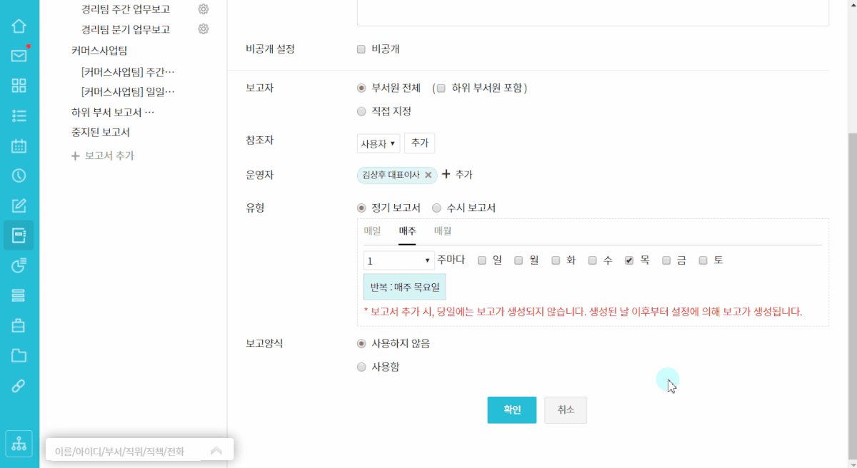 조직도 기반의 맞춤 보고서