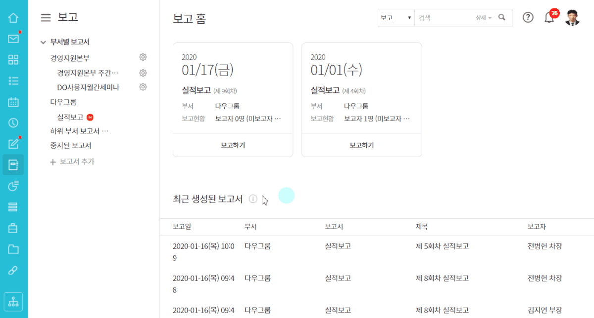 유용하고 편리한 다우오피스 보고 기능을 한번 확인해볼까요?