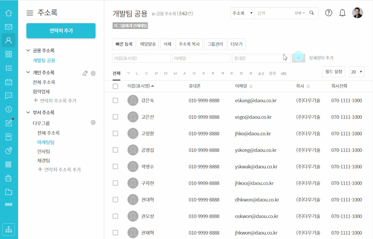 Q. 다우오피스 주소록, 어떻게 활용하나요?