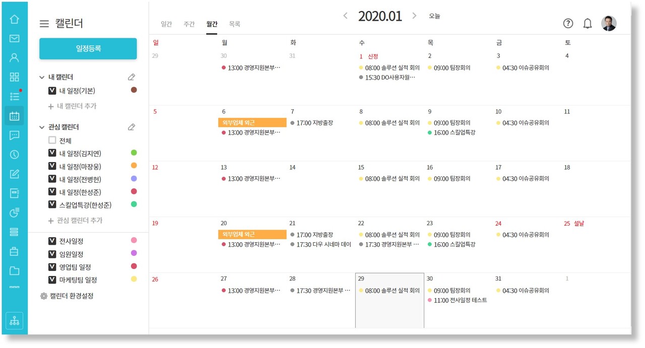 관심 캘린더 설정으로 일정 공유