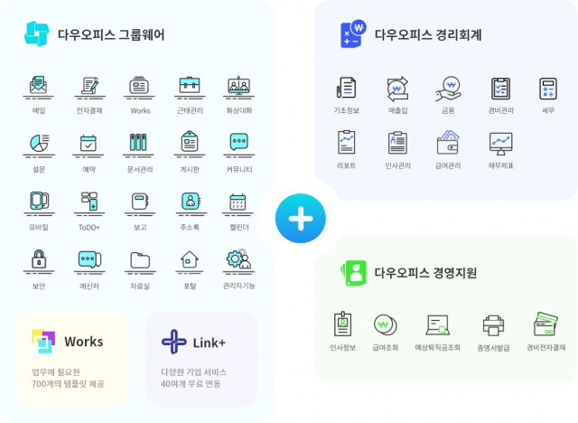이번에 공개된 업무 플랫폼은 기업 내 협업을 위해 꼭 필요한 그룹웨어, 경리 회계, 경영 지원 서비스를 통합 제공하고 연결하는 데 중점을 두고 개발했다. 이로써 다우오피스는 이번 업무 플랫폼 서비스로의 확장을 시작으로, 비즈니스 플랫폼으로서 도약을 이어 나간다고 전했다.