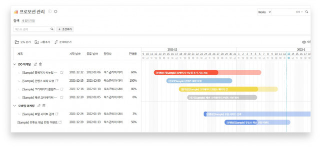 다우오피스 웍스의 신규 기능은 ▲프로젝트 현황을 한눈에 보여주는 ‘간트뷰’ ▲내부 보안 및 편의성 강화를 위한 ‘그룹별 멀티 폼’ ▲각종 데이터 시각화를 위한 ‘리포트 뷰’이다.
