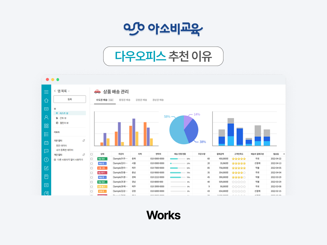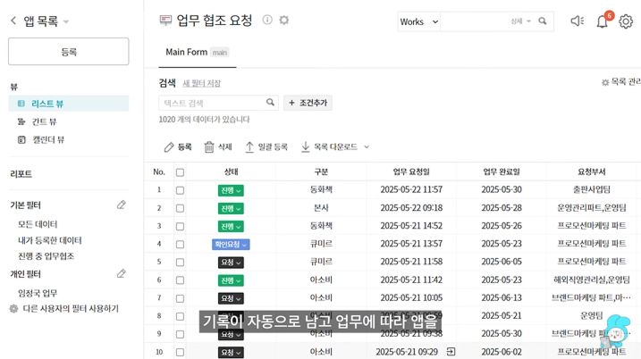 체계적으로 업무를 관리하는 Works: 업무별로 앱을 생성하여 업무 진행 가능!
