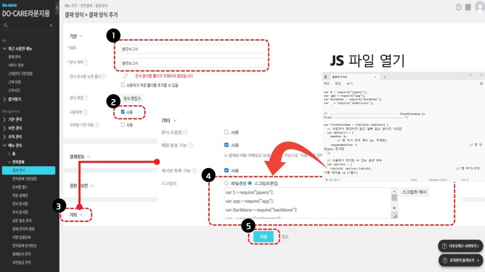 2-1. 고객케어 라운지의 [전자결재 양식샘플]에서 [스크립트(기능포함) 양식] 클릭