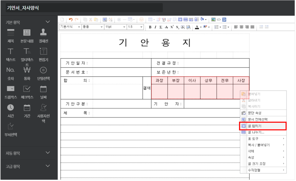02. 양식 편집기를 이용해 결재 양식 편집하기