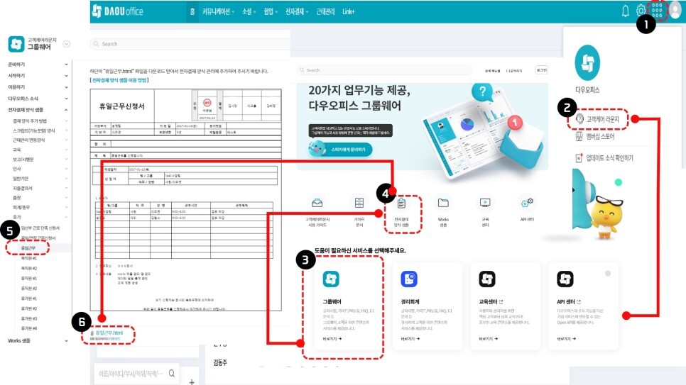 1-4. 그룹웨어에서 [전자결재 양식 샘플] 클릭