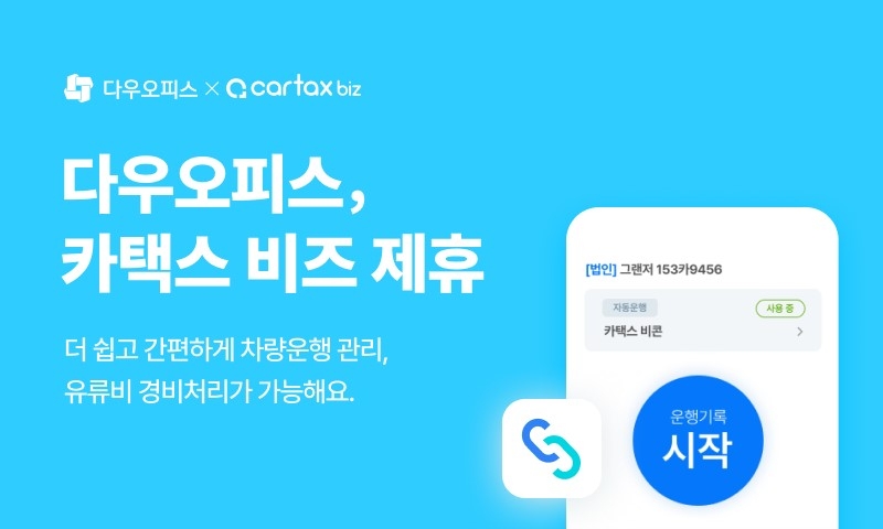 다우기술(대표이사 김윤덕)은 올인원 업무플랫폼 ‘다우오피스’가 차량관리 서비스 ‘카택스’와 제휴를 통한 연동 기능을 선보인다고 16일 밝혔다.