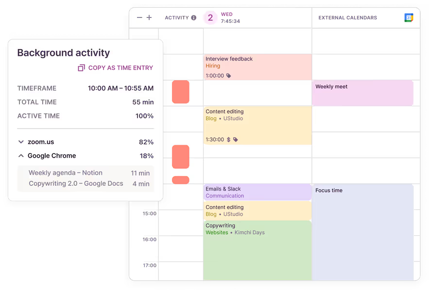 1. 시간 추적: 사용자의 활동을 추적하여, 어떤 앱이나 웹사이트에서 얼마나 시간을 소비했는지를 기록해줘요. 일일이 시간을 기록할 필요 없이 확장 프로그램의 타이머로 작업을 추적할 수 있어 편리해요.