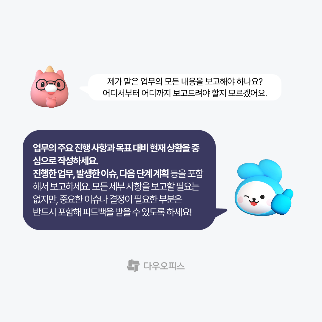 내가 맡은 업무 중 어디서부터, 어디까지 보고를 올려야 할지 고민되실 거예요.