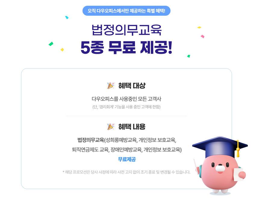 5️⃣ 오직 다우오피스에서만, 5대 법정의무교육 무료 수강 혜택 !