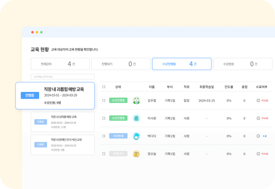 임직원의 학습 정보와 수료 여부를 한눈에 확인!