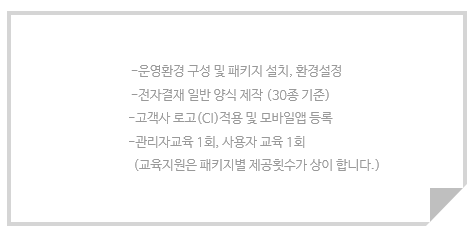 다만 초기세팅대행을 원하는 고객사에 한해 옵션상품으로 50만원에 아래와 같은 서비스를 제공해 드립니다.