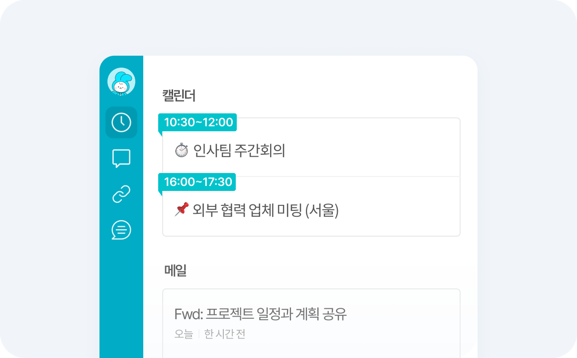 메신저 기능에 포함된 Today를 통해 캘린더, 메일, 전자결재 등을 한 눈에 확인할 수 있어요.