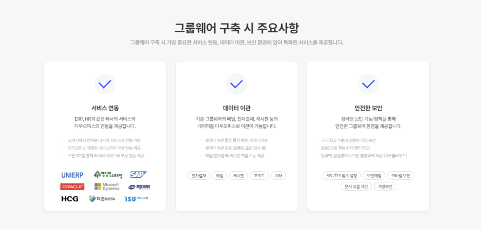그래서 보안과 안전성이 높고, 연동이 가능한 새로운 그룹웨어를 찾다가
