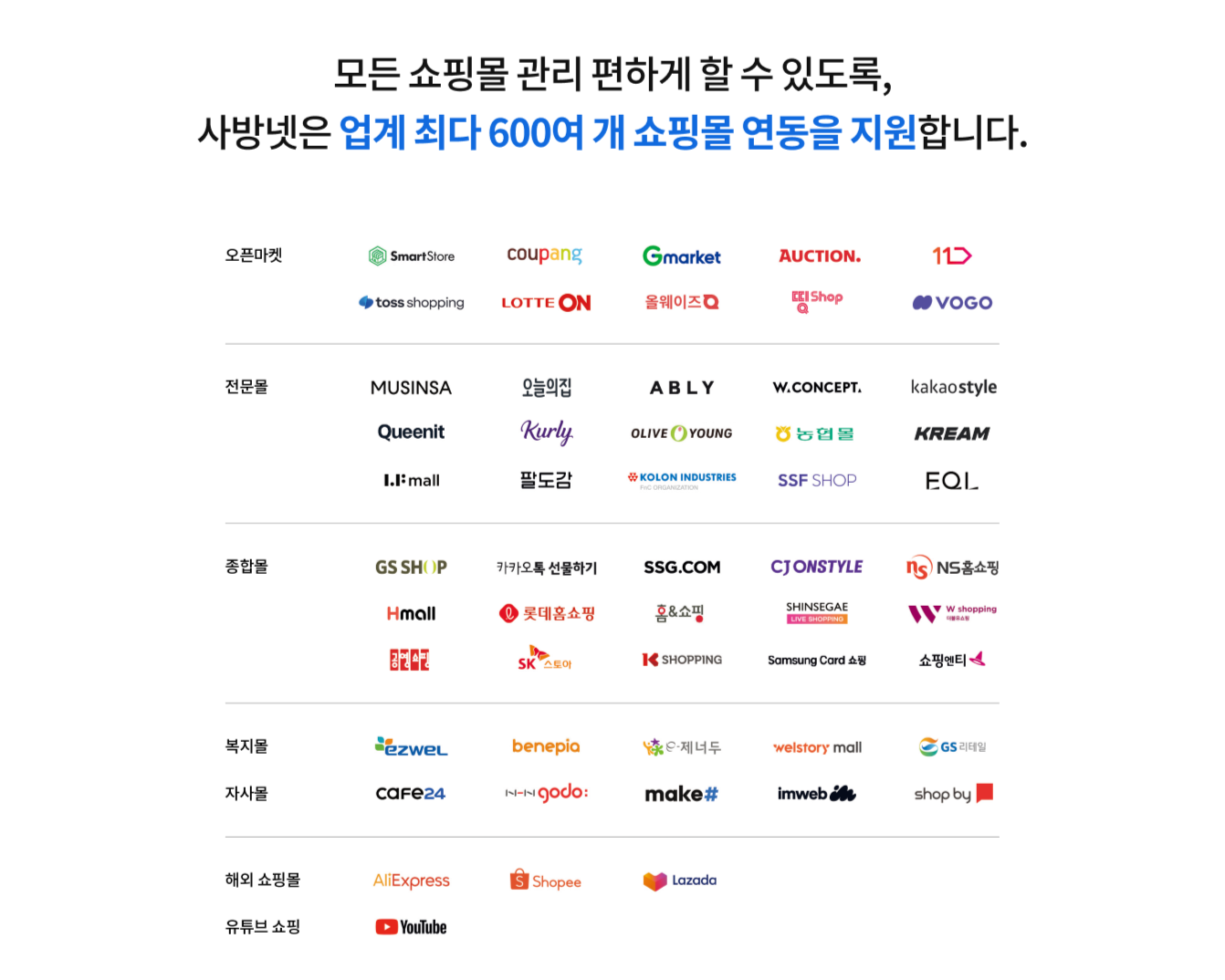 업계 최다를 자랑하는 600여 개 쇼핑몰 연동을 지원하며,