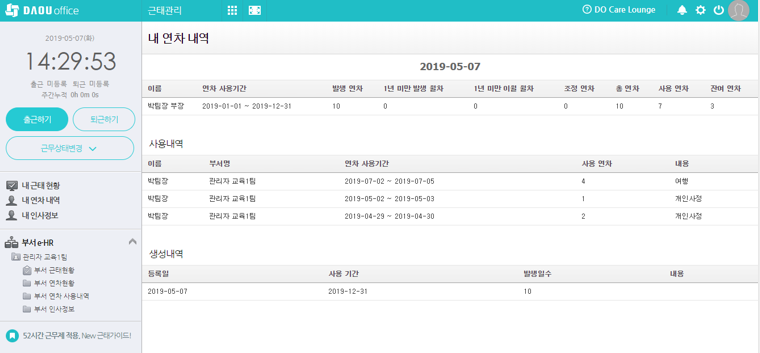 인사 담당자 분들의 업무를 덜어드릴 다우오피스 연차관리 기능입니다!