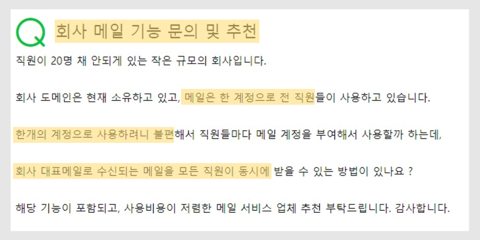 10명 미만의 작은 기업인데 합리적인 요금의 메일 솔루션이 없을까요?