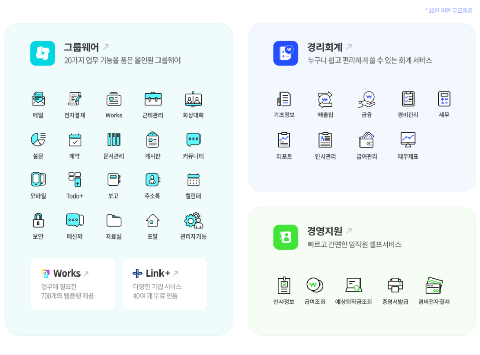 5인 미만의 작은 기업이라서 비용 많이 안들이고 사용할 수 있는 그룹웨어가 있을까요?