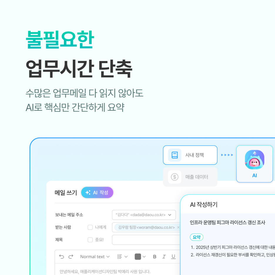 사내 데이터와 결합된 다우오피스 AI에서 완성됩니다.